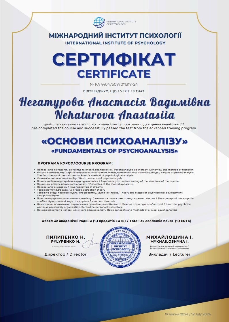 2024 — «Основи психоаналізу», Міжнародний інститут психології