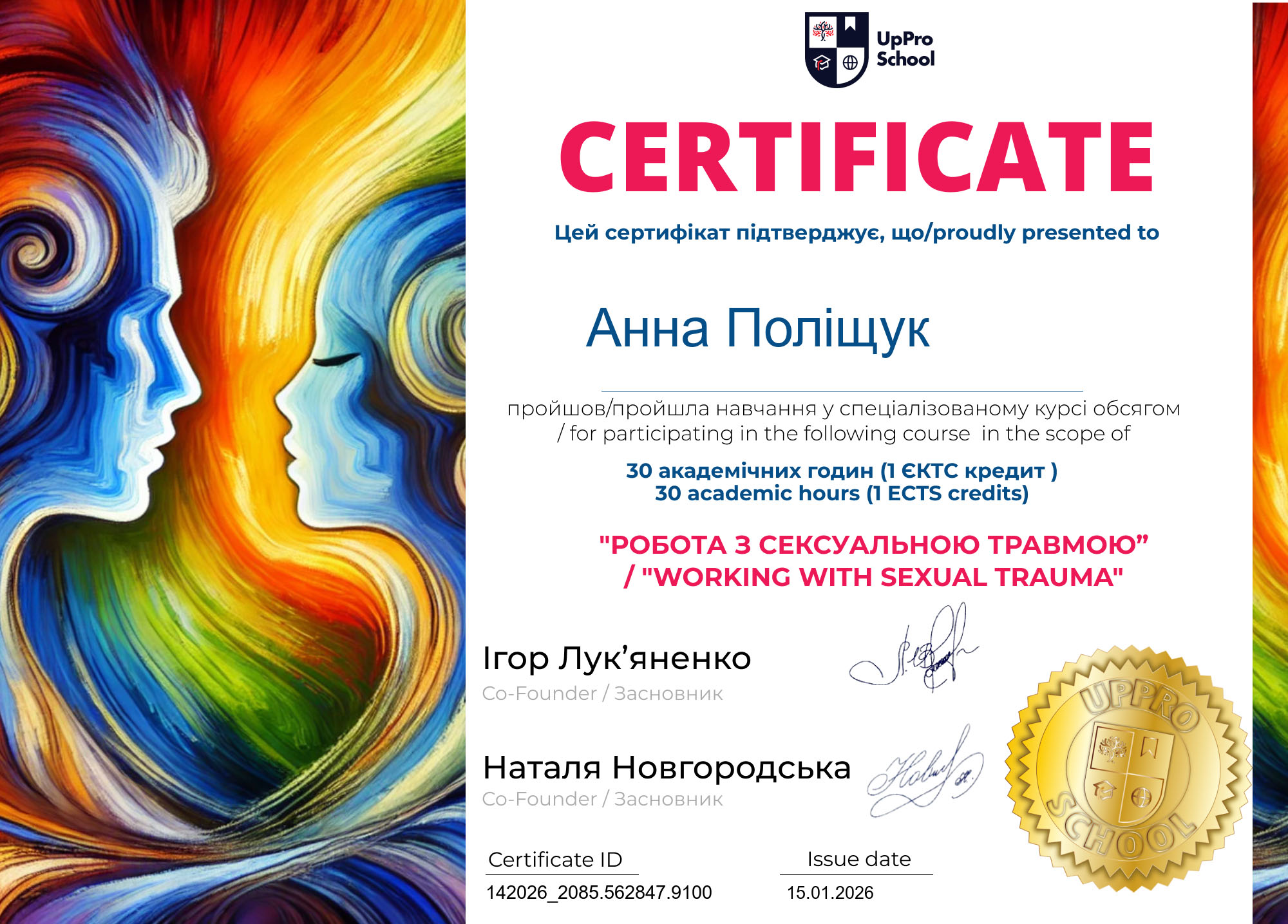 2026 — Спеціалізований курс «Робота з сексуальною травмою», UpPro School.