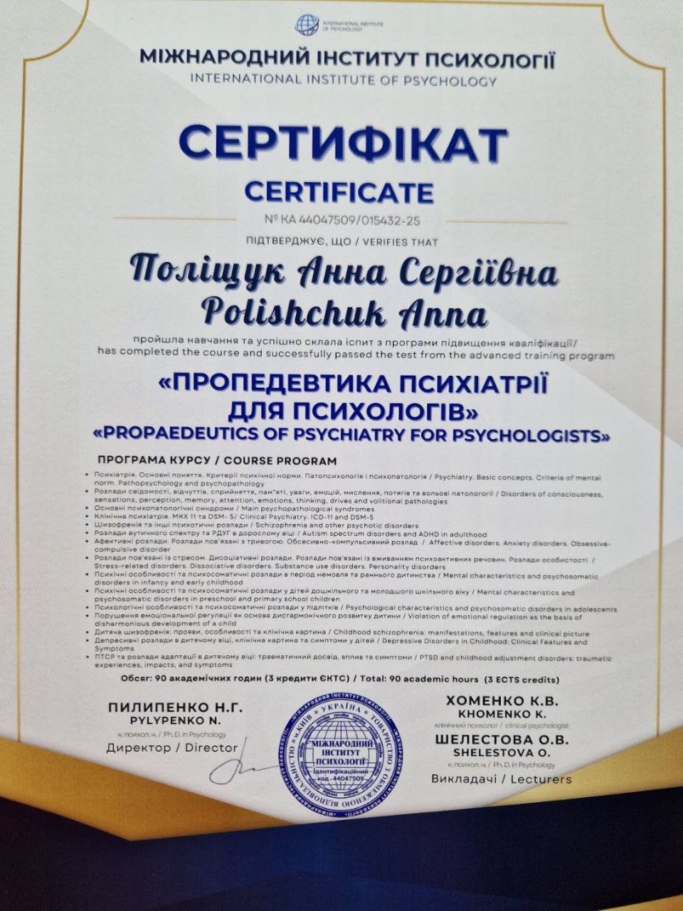 Міжнародний інститут психології «Пропедевтика психіатрії для психологів»