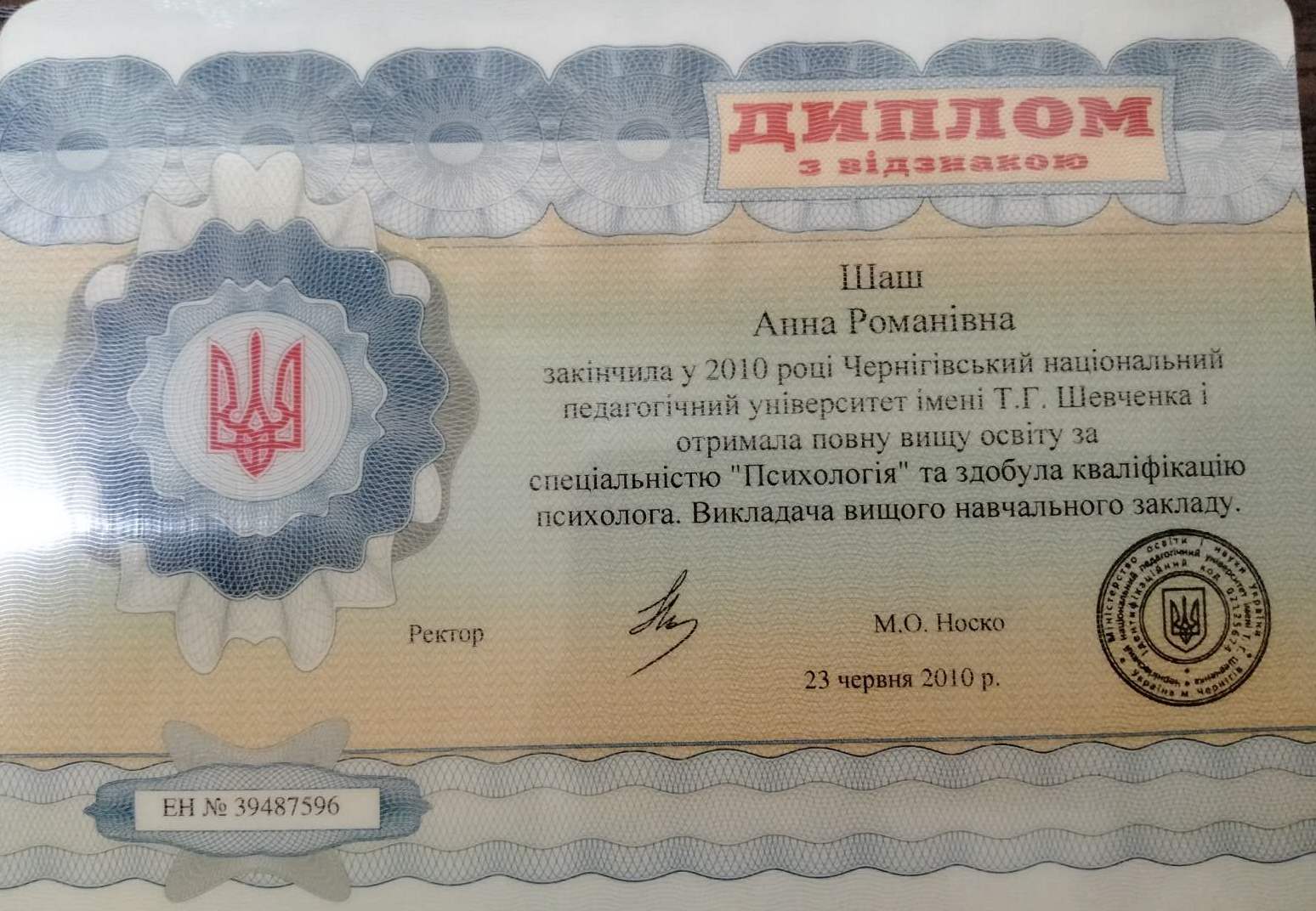 2010 – Магістр психології, Чернігівський національний педагогічний університет імені Т.Г. Шевченка.