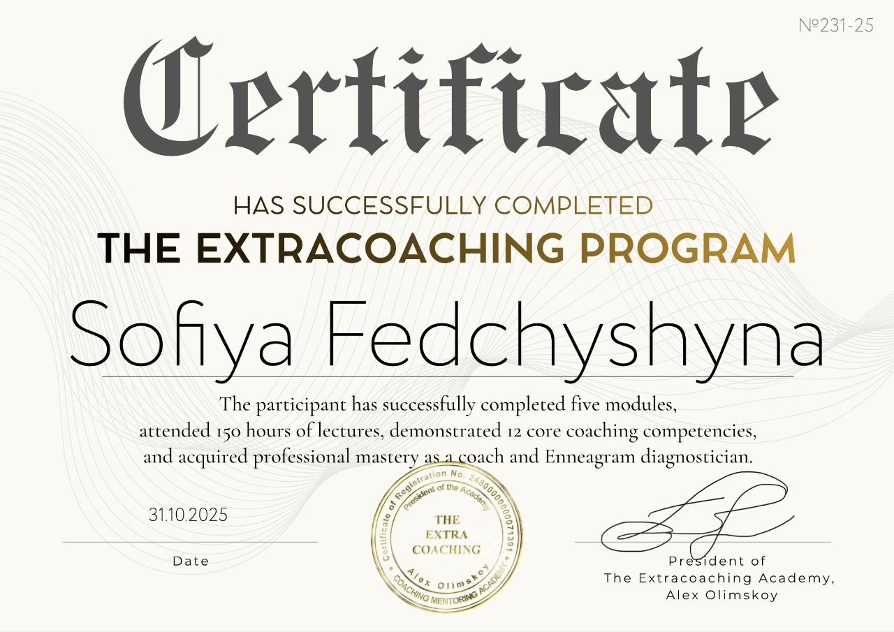 2025 — «Екстракоучинг програма (Extra Coaching Program)», The Extracoaching Academy