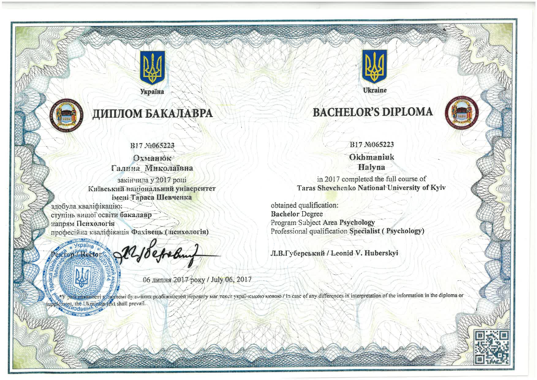 2017 — Бакалавр психології, Київський національний університет імені Тараса Шевченка