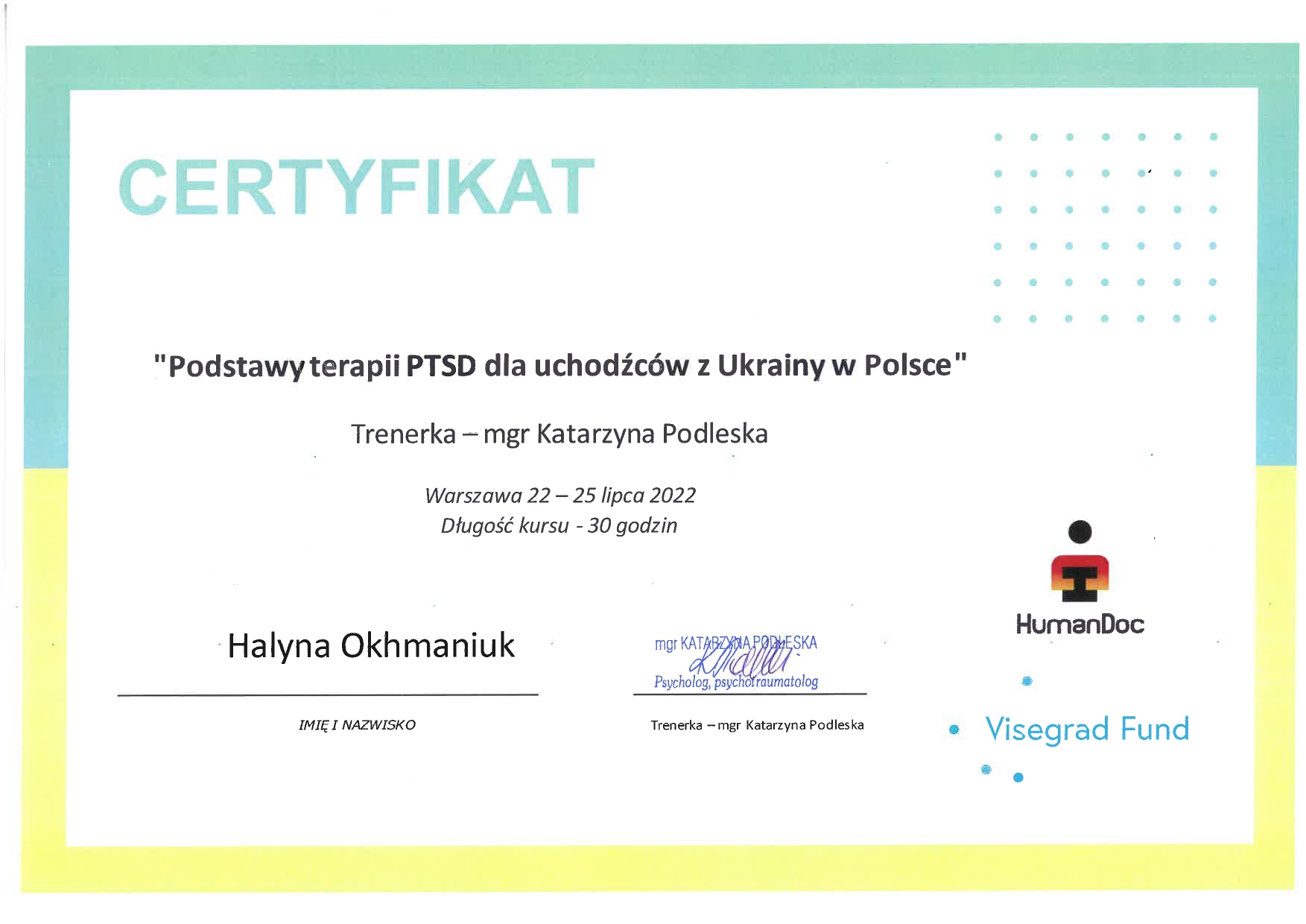 2022 — «Основи терапії ПТСР для українців у Польщі», mgr Katarzyna Podleska