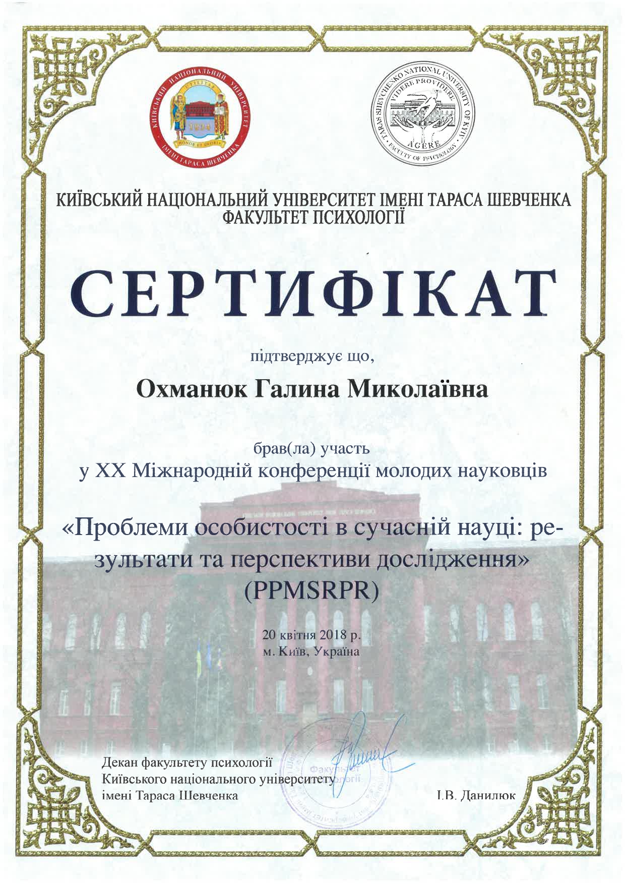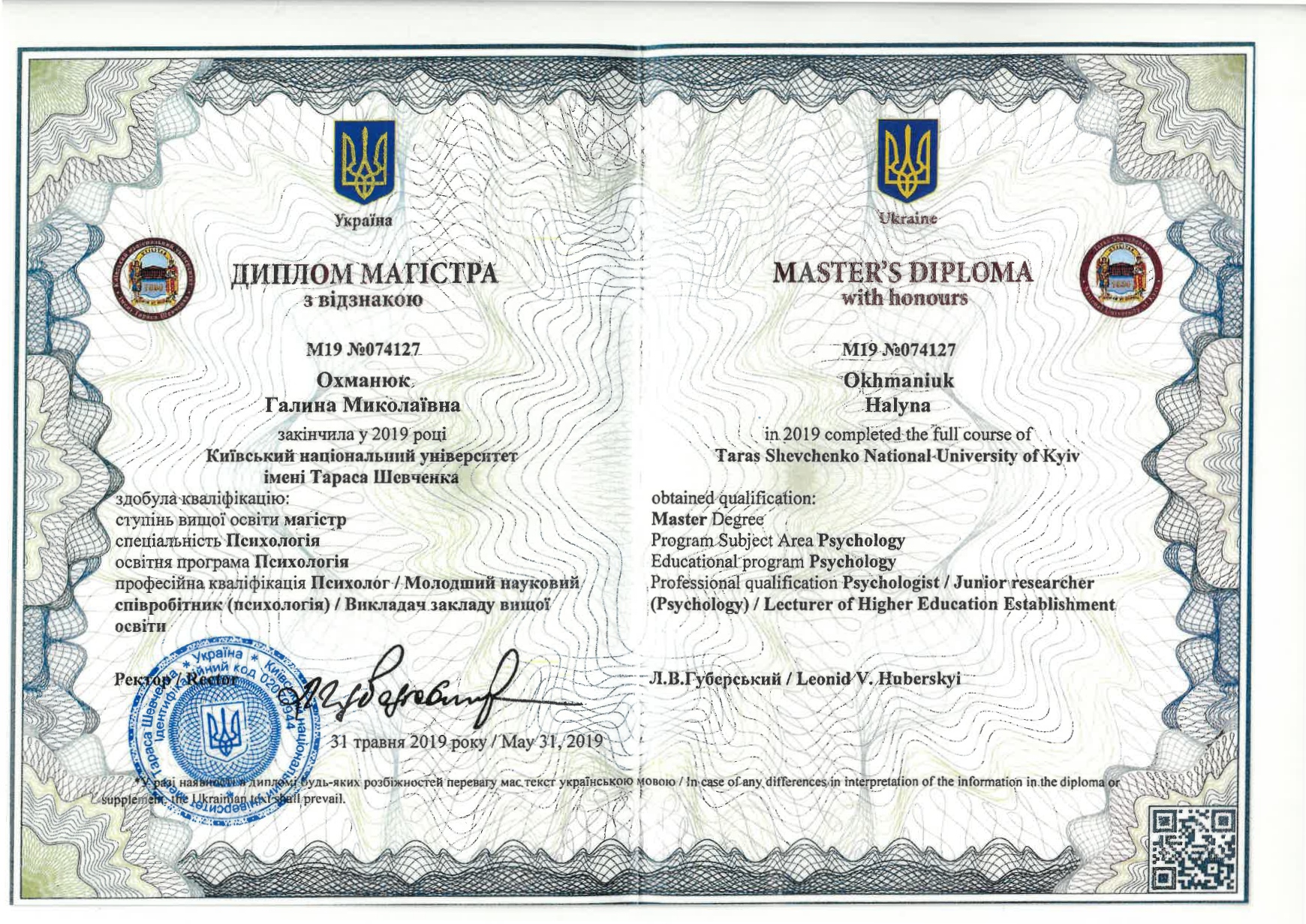 2019 — Магістр пихології, Київський національний університет імені Тараса Шевченка