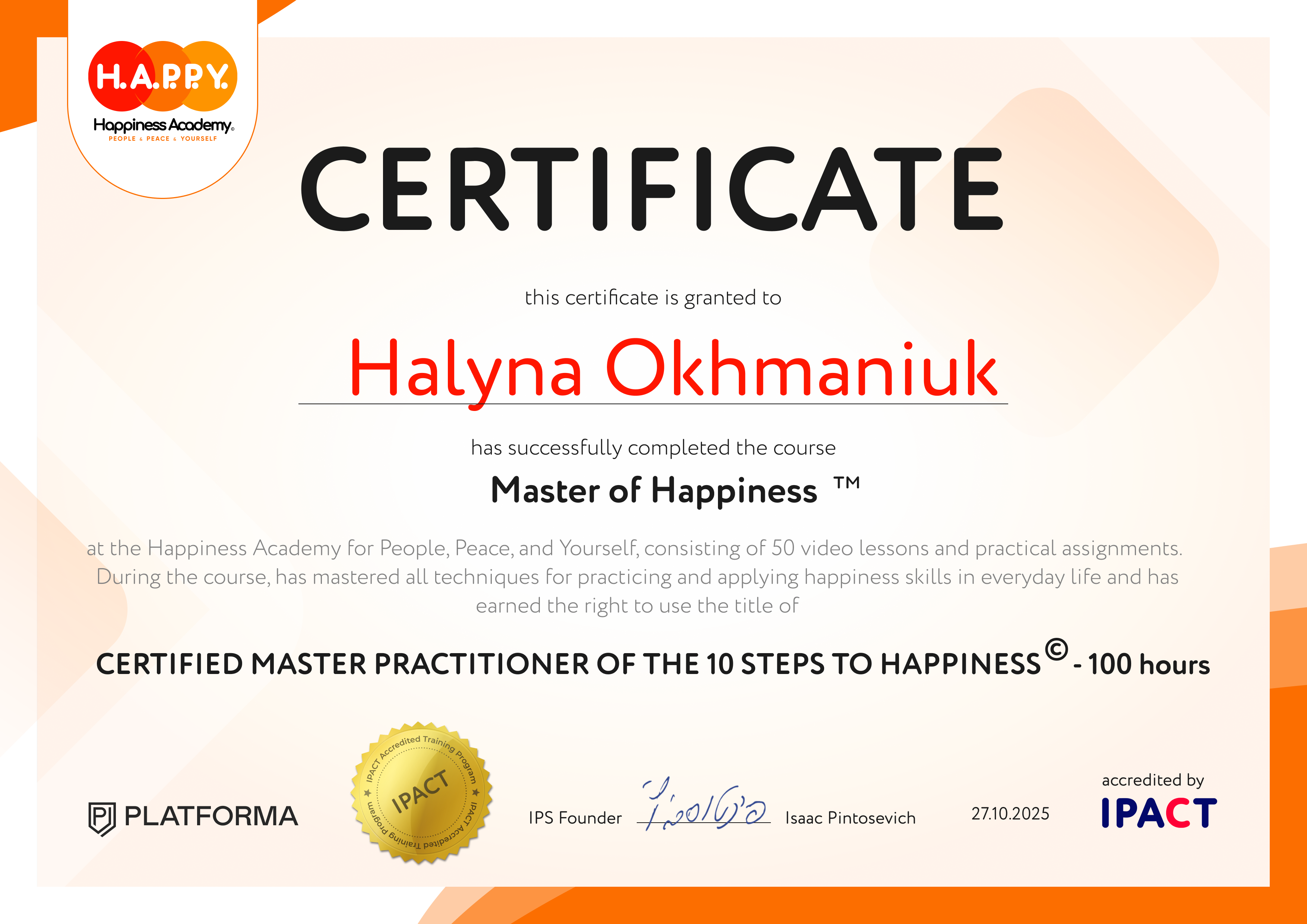 2025 — «Практик щастя (Master of Happiness)», Happiness Academy, IPACT