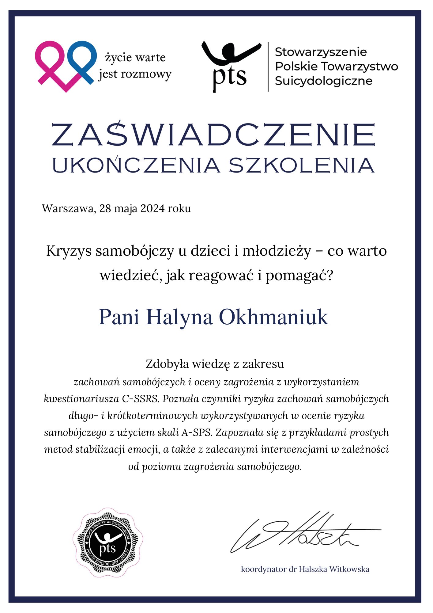 2024 — «Криза самогубства у дітей і молоді — як реагувати та допомагати?», Польське Товариство Суїцидологічне (PTS)