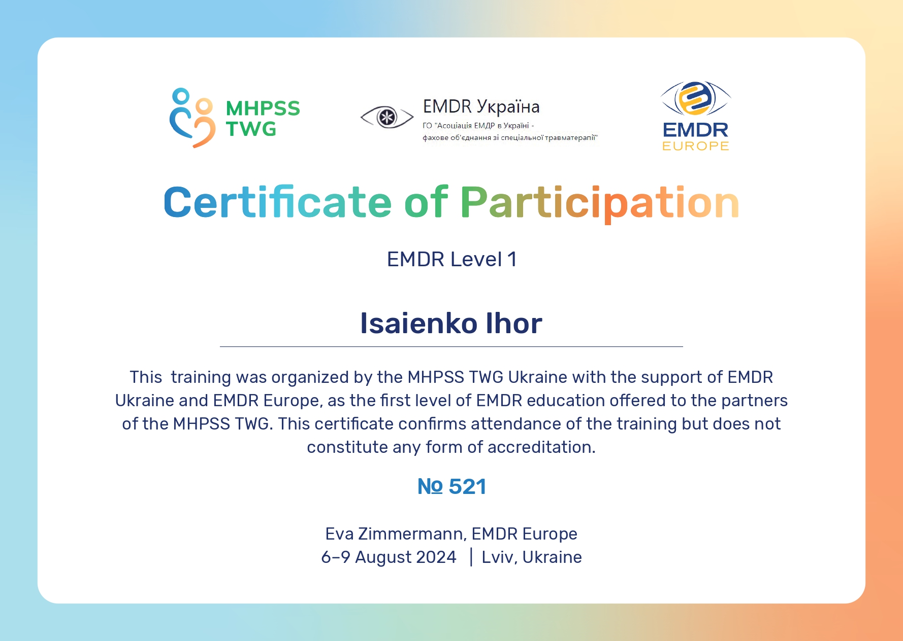 2024 — EMDR Level 1 (участь), EMDR Україна / EMDR Europe