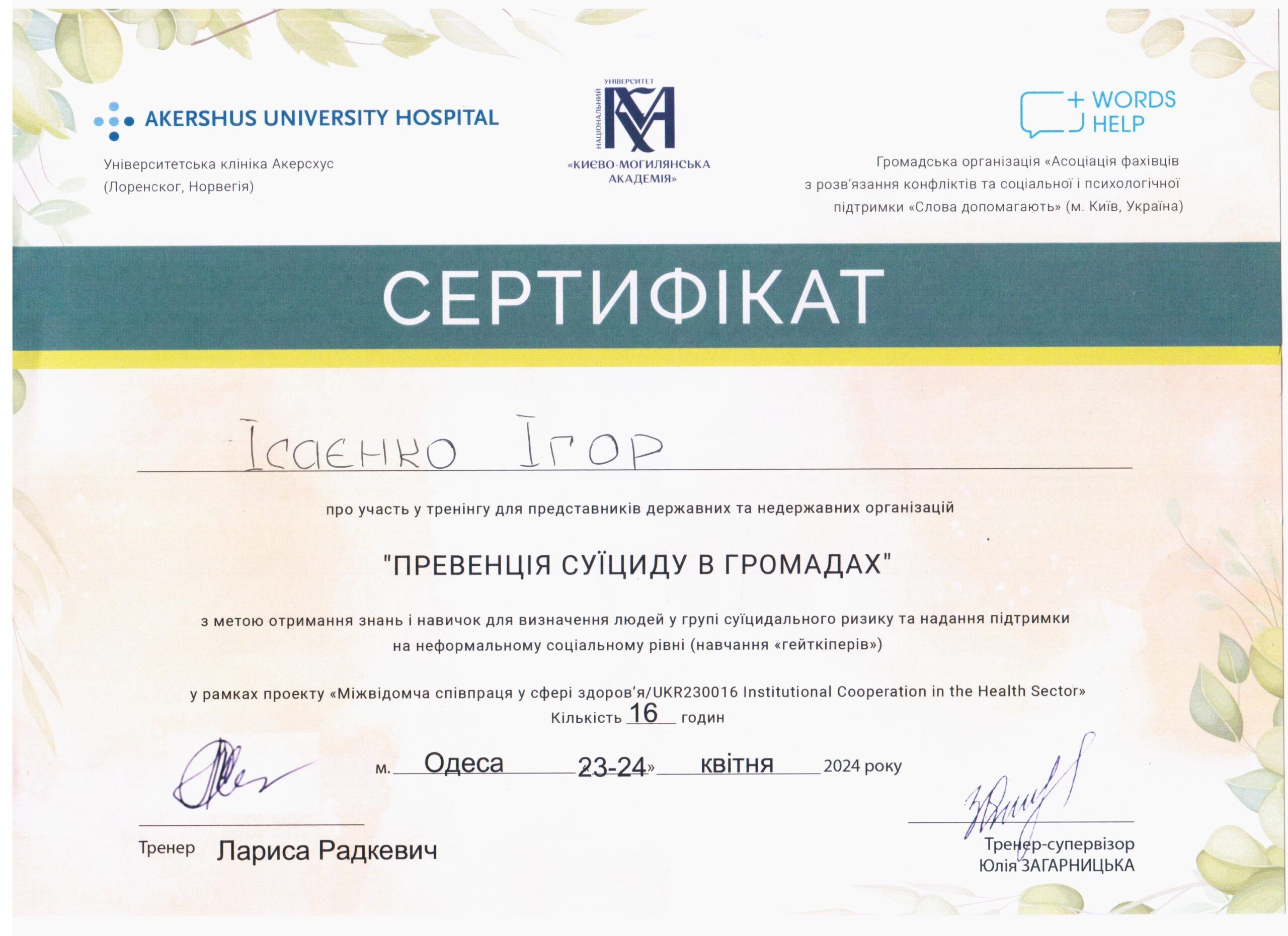 2024 — Превенція суїциду в громадах (16 годин), Одеса