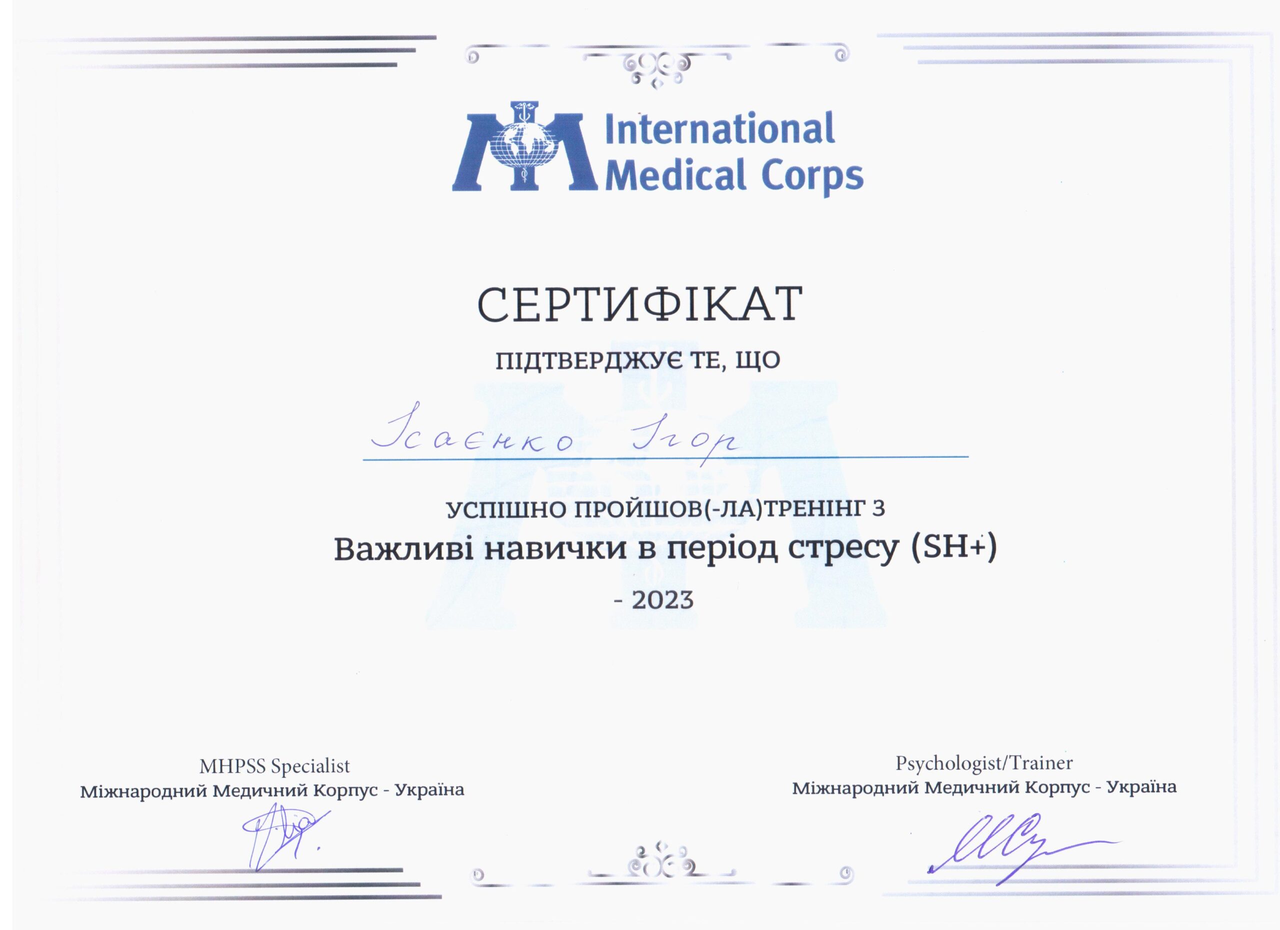 2023 — Важливі навички в період стресу (SH+), Міжнародний Медичний Корпус (IMC)