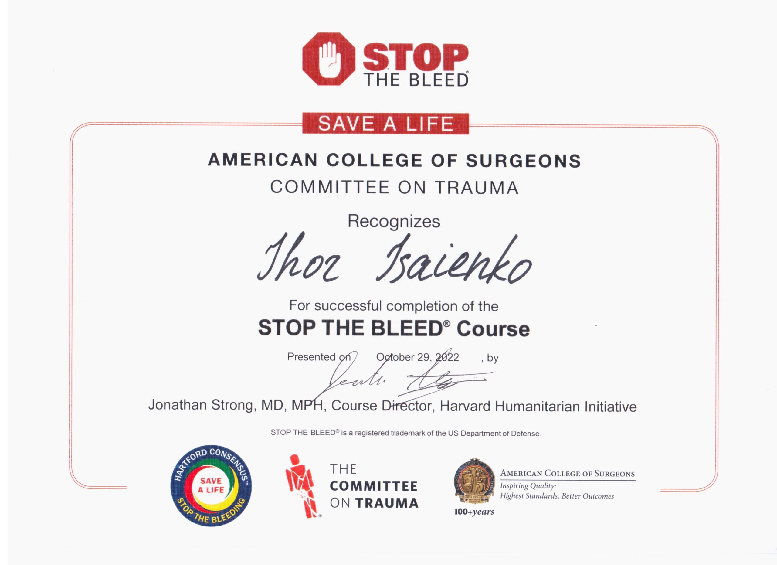 2022 — Stop the Bleed (перша допомога при кровотечах), American College of Surgeons