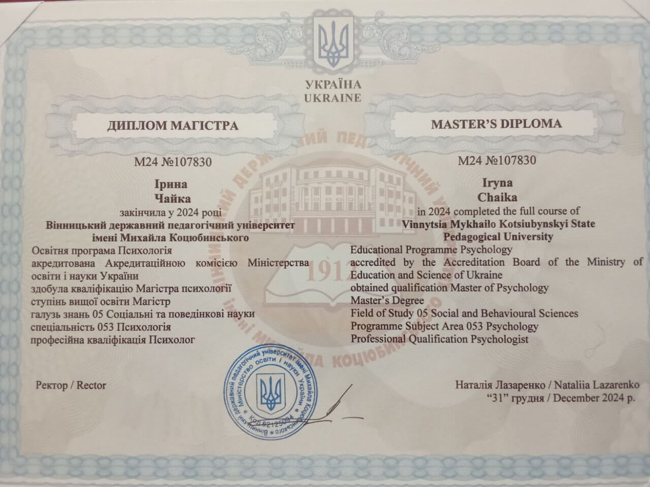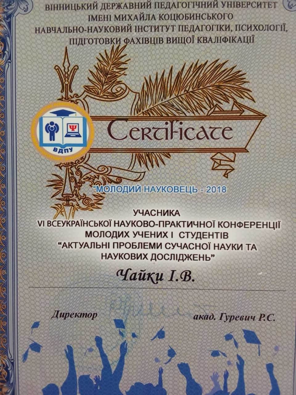 Навчальний заклад: Вінницький державний педагогічний університет імені Михайла Коцюбинського (магістратура)