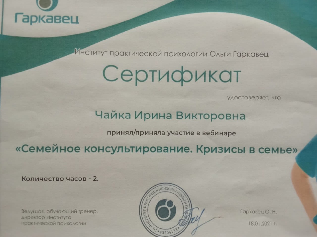 - Вебінар «Сімейне консультування. Кризи в сім’ї» (2021)