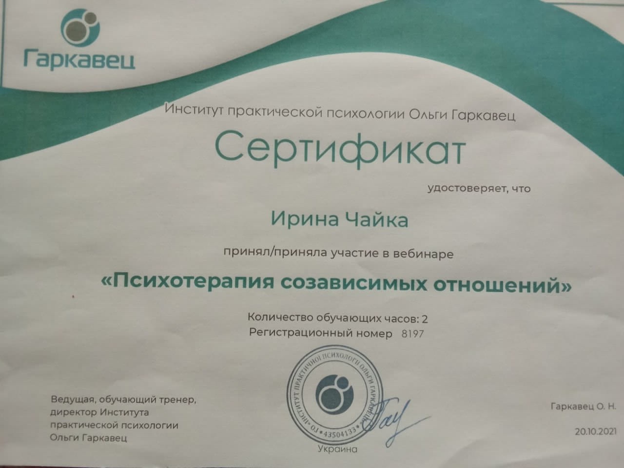 - Вебінар «Психотерапія співзалежних взаємин» (2021)
