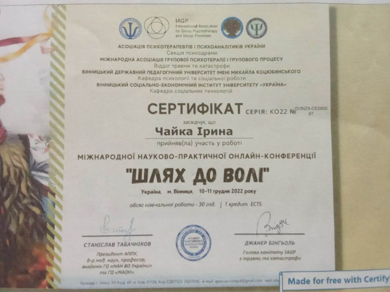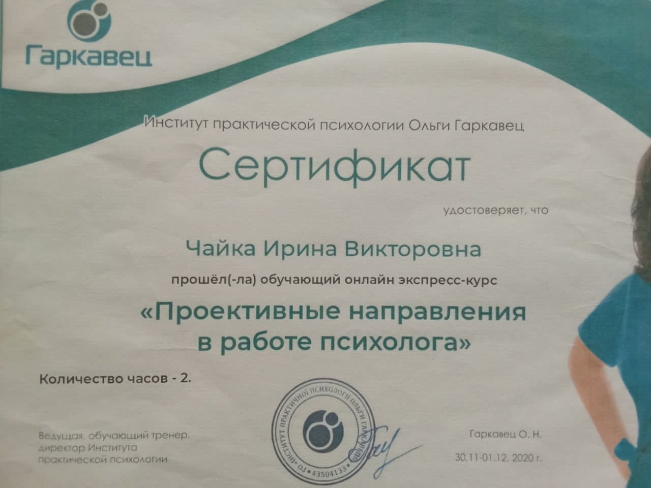 - Експрес-курс «Проективні напрямки у роботі психолога» (2020)