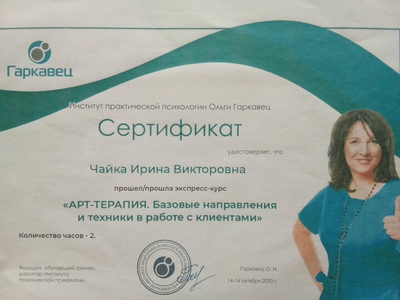 - Експрес-курс «Арт-терапія. Базові напрямки та техніки у роботі з клієнтами» (2020)