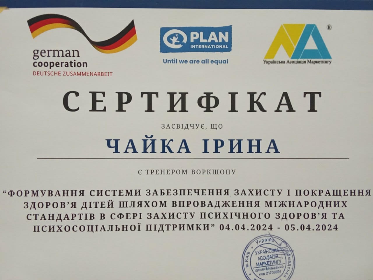 - Тренер Німецько-українського проєкту «Building, back, better (BBB) – Будуємо, відбудовуємо, покращуємо» (2024 р.)