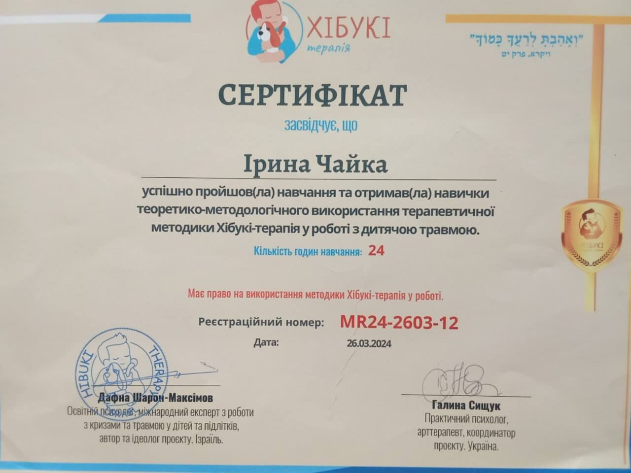 Також працюю з дитячими травмами, низькою самооцінкою, страхами, тривожністю, агресією, панічними атаками, транзиторно-моторними тиками та обсесивно-компульсивними розладами.
