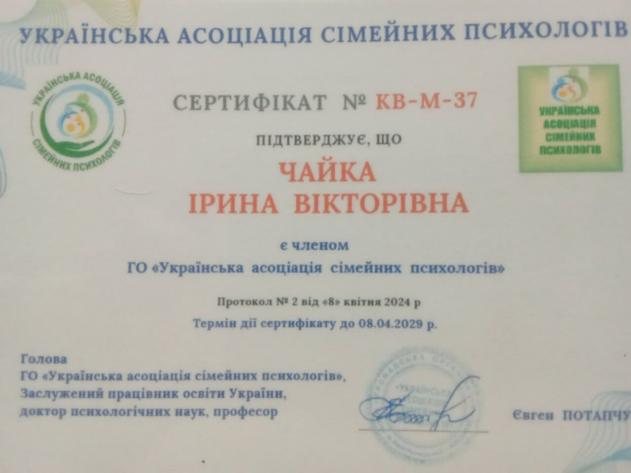 - Член Української асоціації сімейних психологів (з 2024 року)