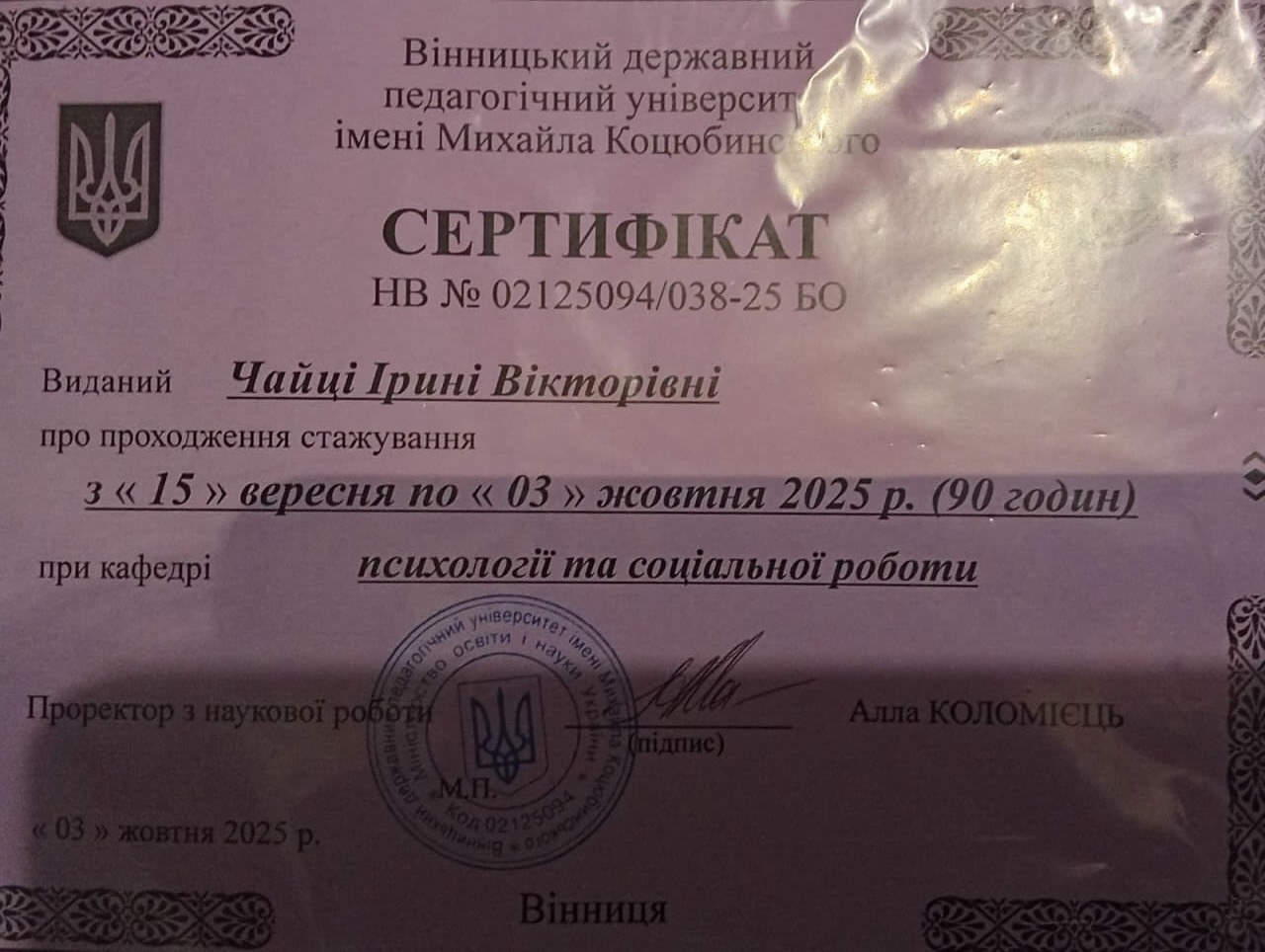 Навчальний заклад: Вінницький державний педагогічний університет імені Михайла Коцюбинського (аспірантура)