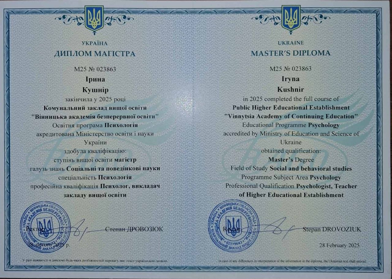 2025 — Магістр психології, Комунальний заклад безперервної освіти «Вінницька академія безперервної освіти»