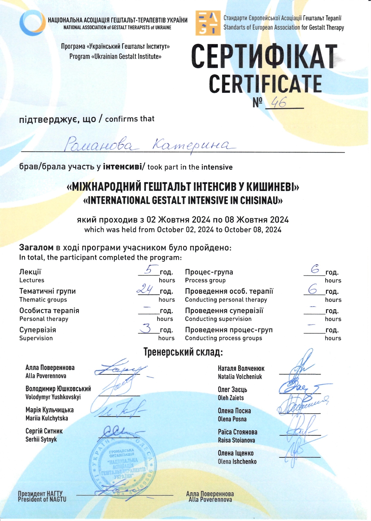 Сертифікований гештальт-терапевт