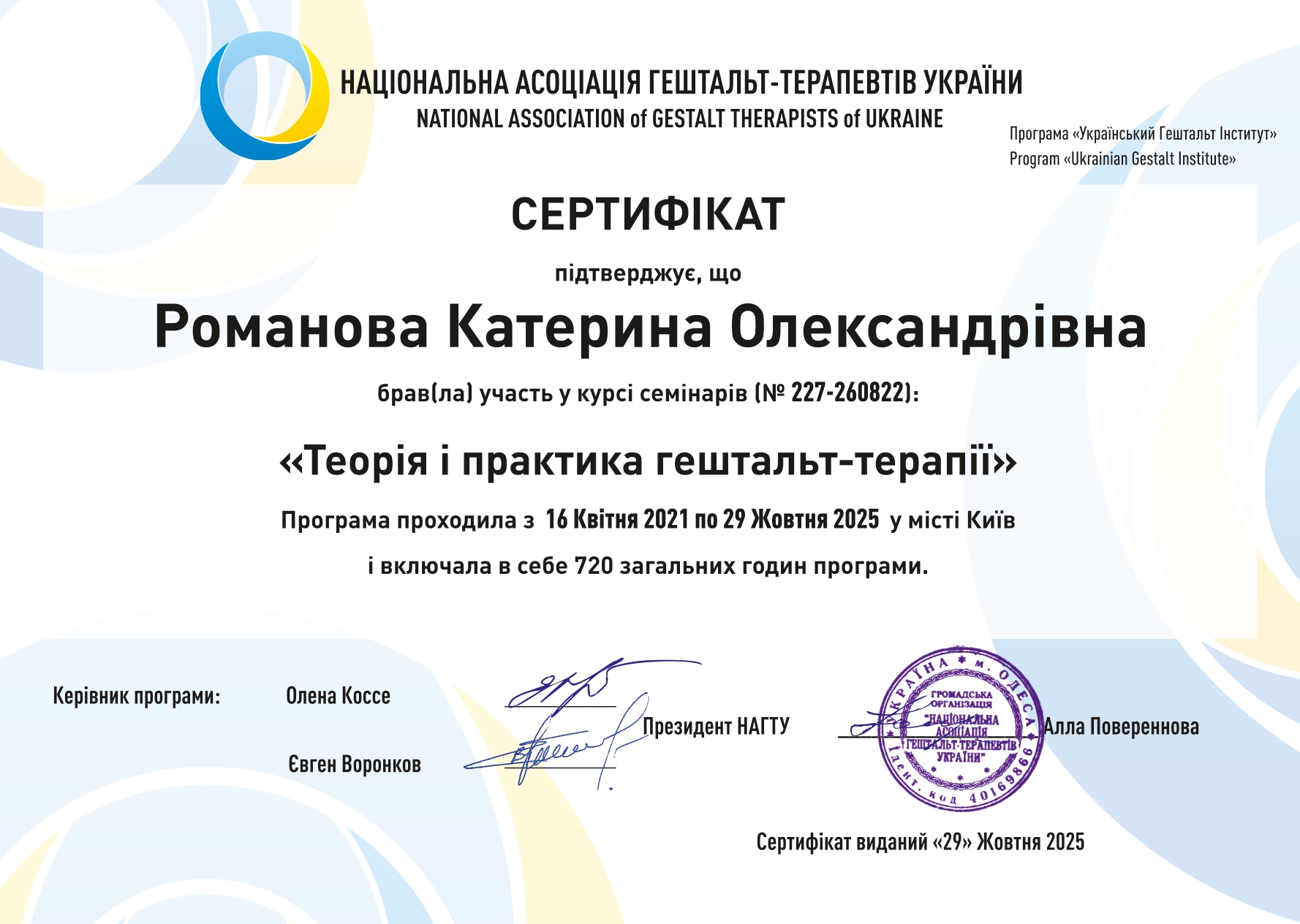 НАЦІОНАЛЬНА АСОЦІАЦІЯ ГЕШТАЛЬТ-ТЕРАПЕВТІВ УКРАЇНИ
