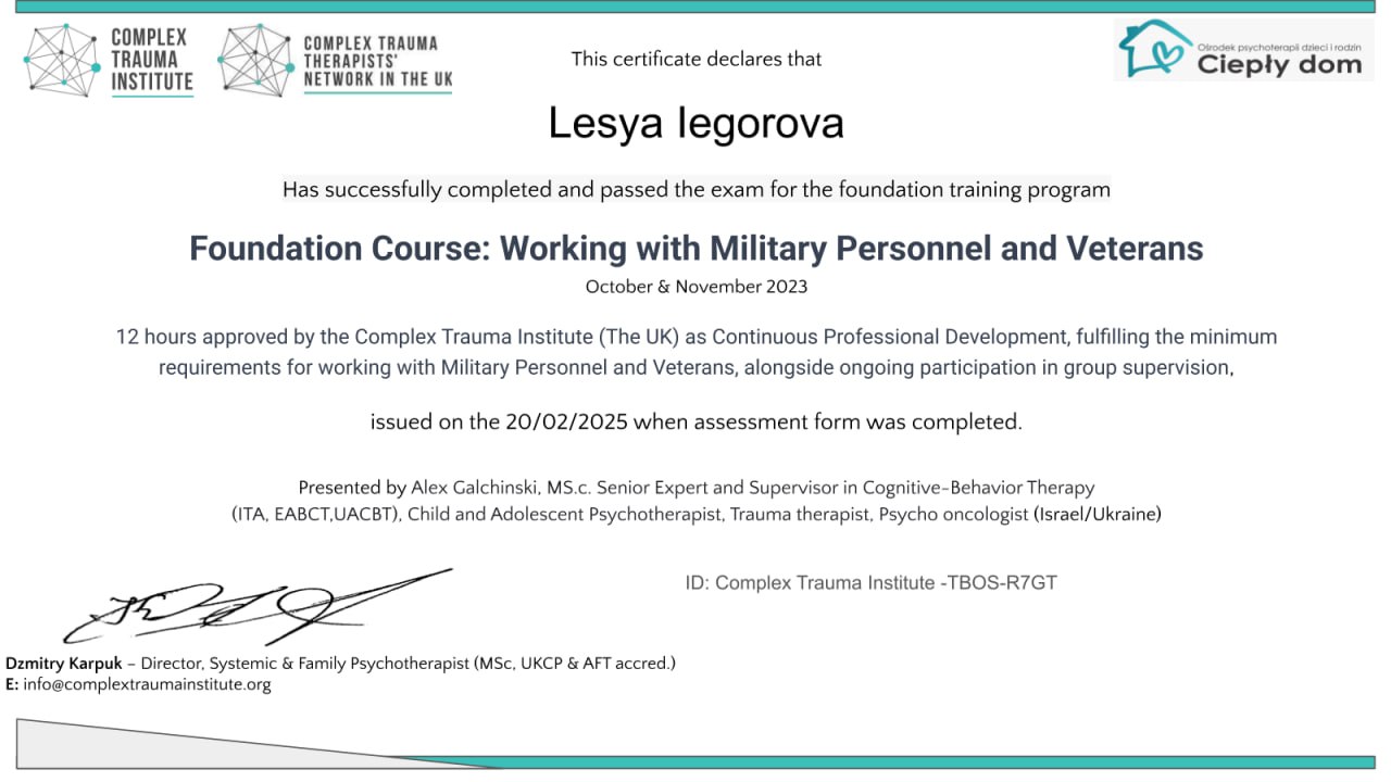 2025 — Foundation Course: Working with Military Personnel and Veterans, Complex Trauma Institute (UK)