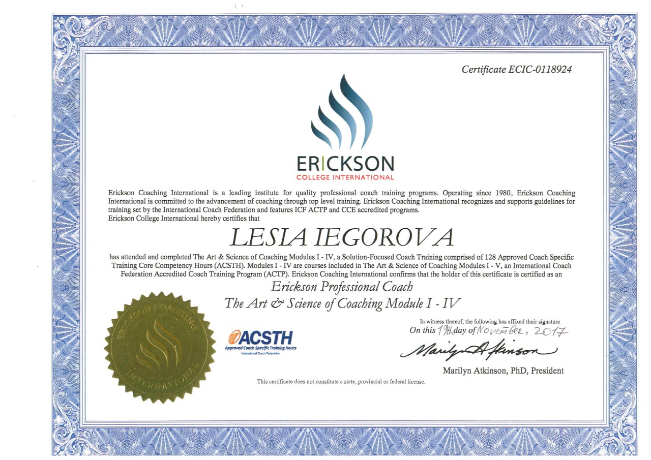 • Сертифікаційна програма Еріксонівського Університету коучингу