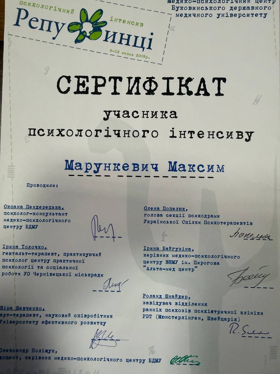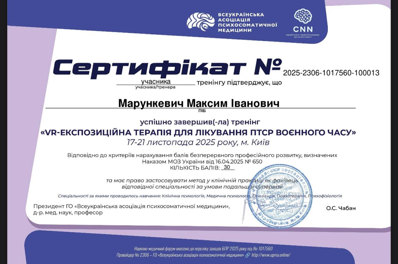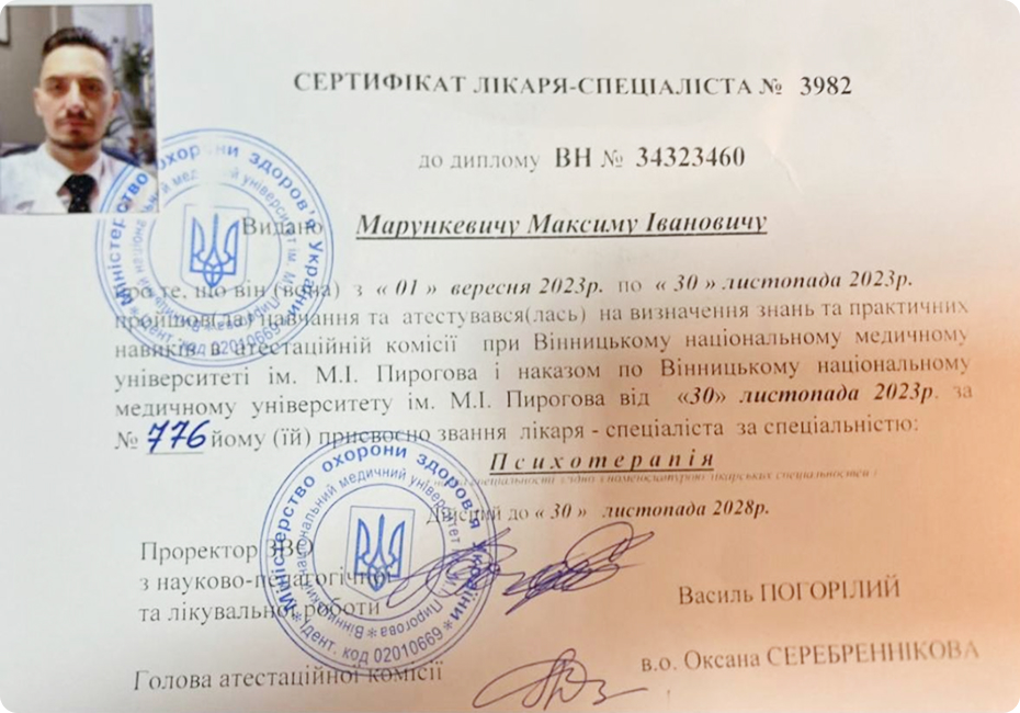 Сертифікований лікар-психотерапевт із правом використання інтегративного підходу