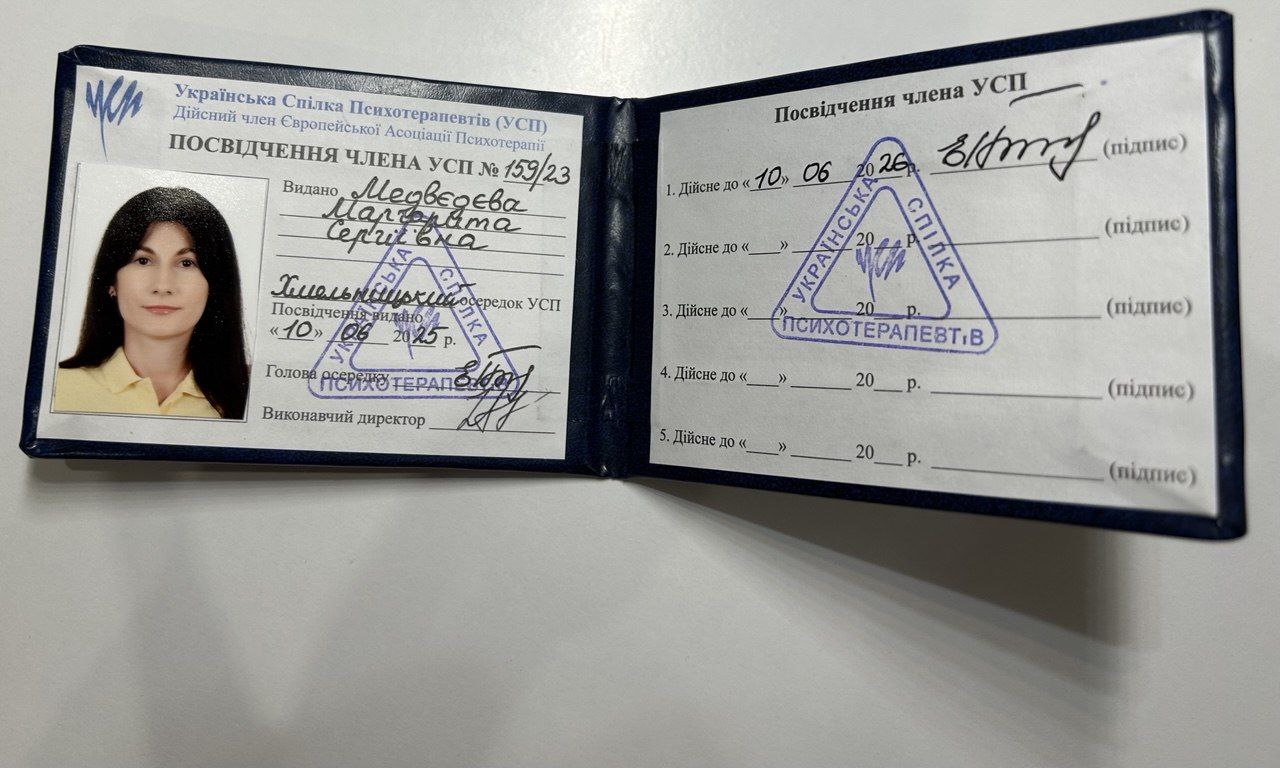 Мене звати Маргарита, я магістр клінічної психології (УКУ) та сертифікований психотерапевт (ІРСГП). Практикую з 2019 року та продовжую навчання на міжнародних програмах, щоб забезпечувати якісну та фахову підтримку.