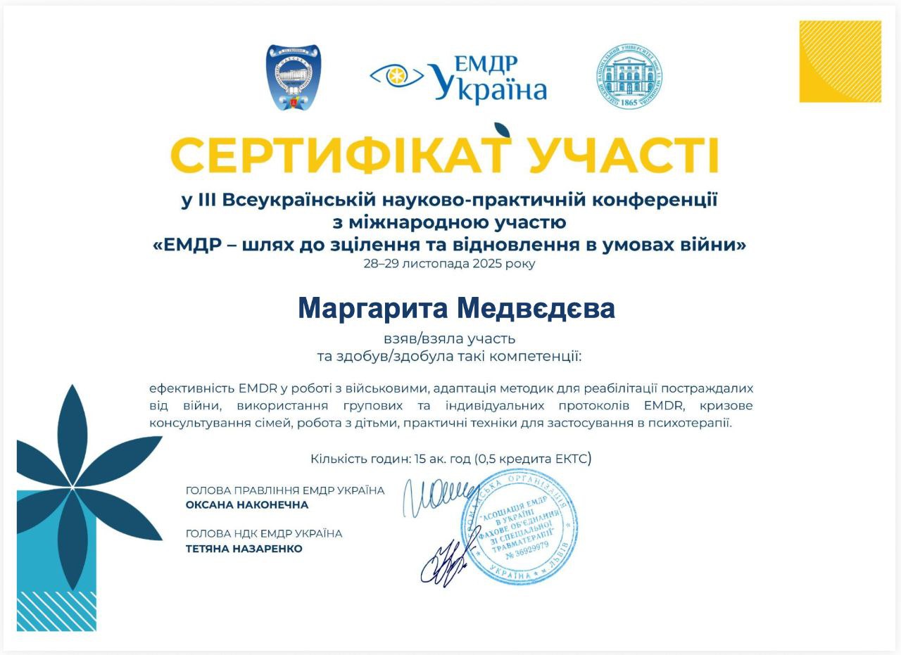 2025 — III Всеукраїнська науково-практична конференція «EMDR – шлях до зцілення та відновлення в умовах війни», Асоціація EMDR Україна