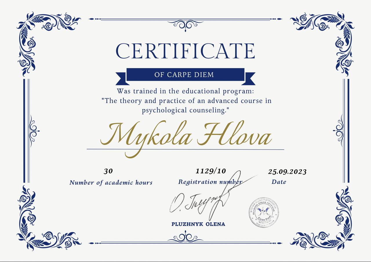 Мене звуть Глова Микола. Допомогти людині «виростити» в собі внутрішнього психолога, знайти вихід зі складної ситуації – це те, чим я займаюся.