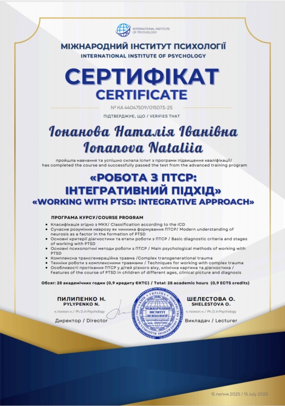 2025 — Курс «Робота з ПТСР: інтегративний підхід», Міжнародний інститут психології