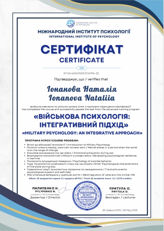 2025 — Курс «Військова психологія: інтегративний підхід», Міжнародний інститут психології