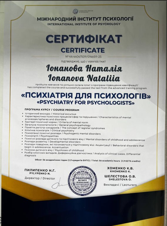 2025 — Курс «Психіатрія для психологів», Міжнародний інститут психології
