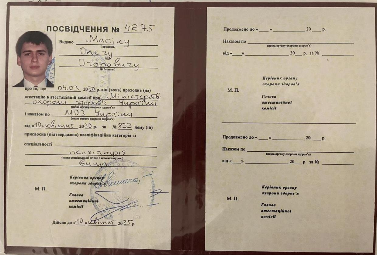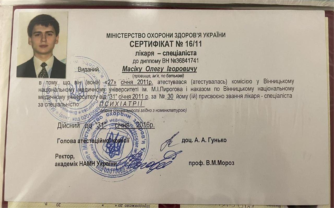 2011 — Інтернатура (спеціальність «Психіатрія»), Вінницький національний медичний університет ім. М. І. Пирогова