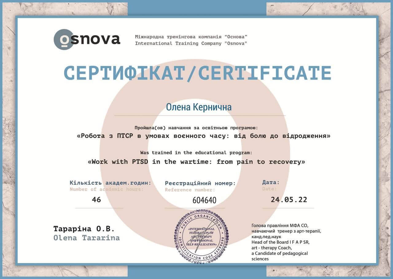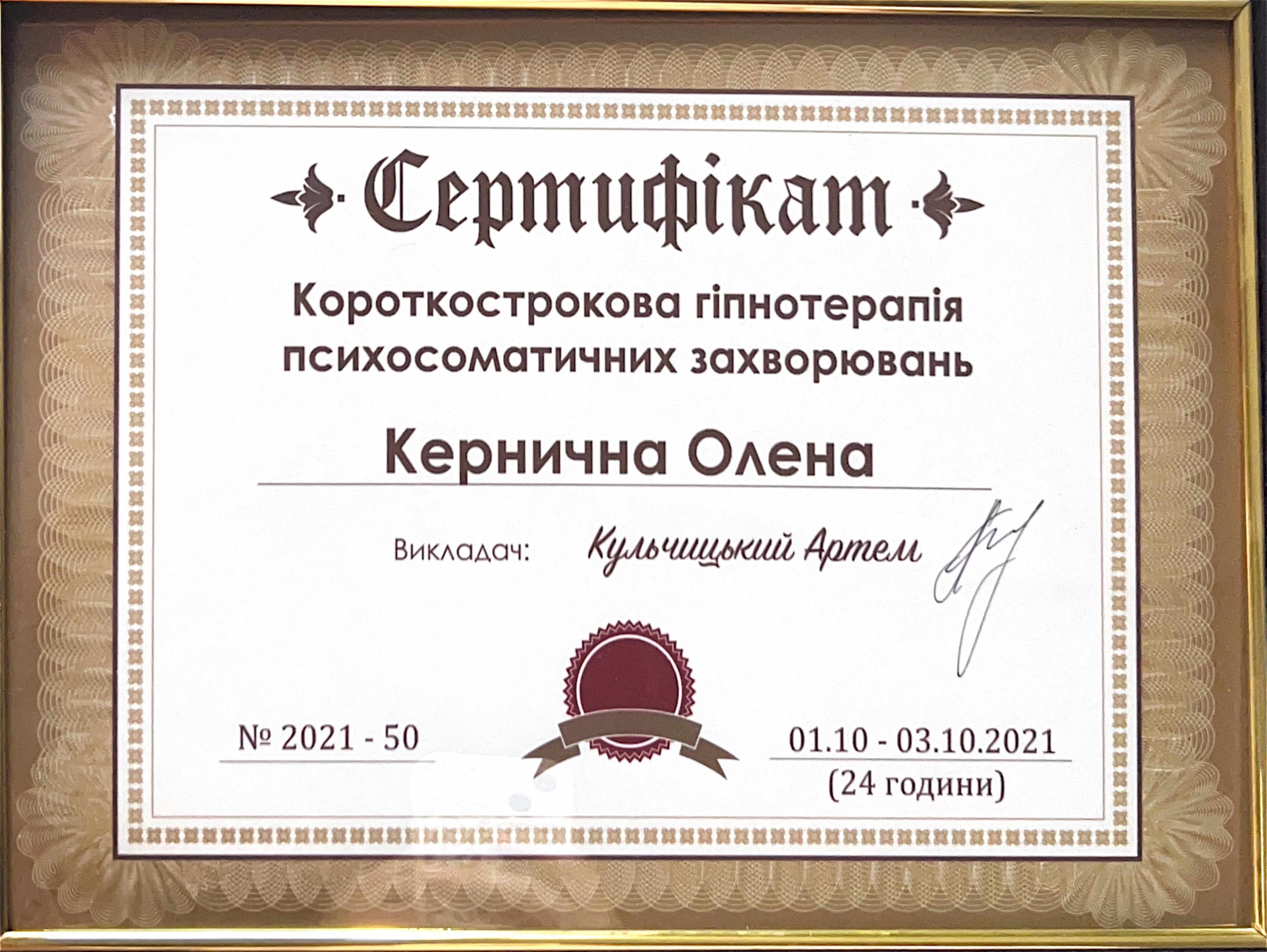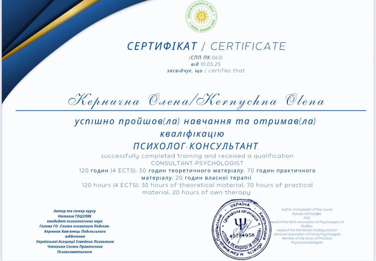 - Спілка психологів Поділля – Психолог консультант 120 годин.
