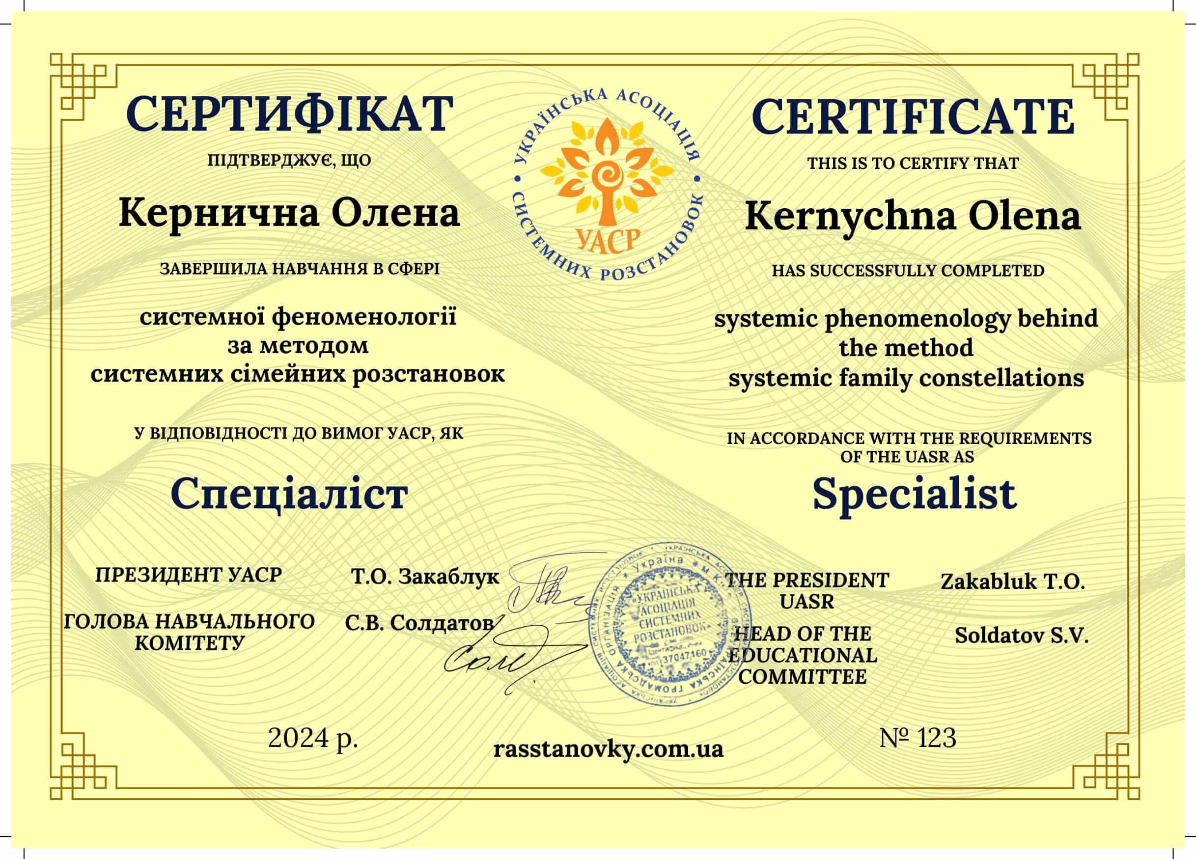- Член ГО “Українська асоціація системних розстановок” з 2024р.