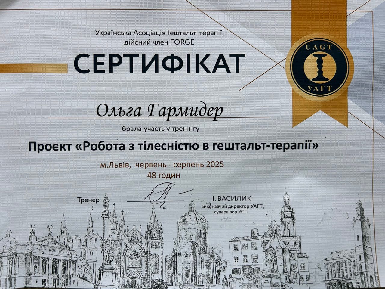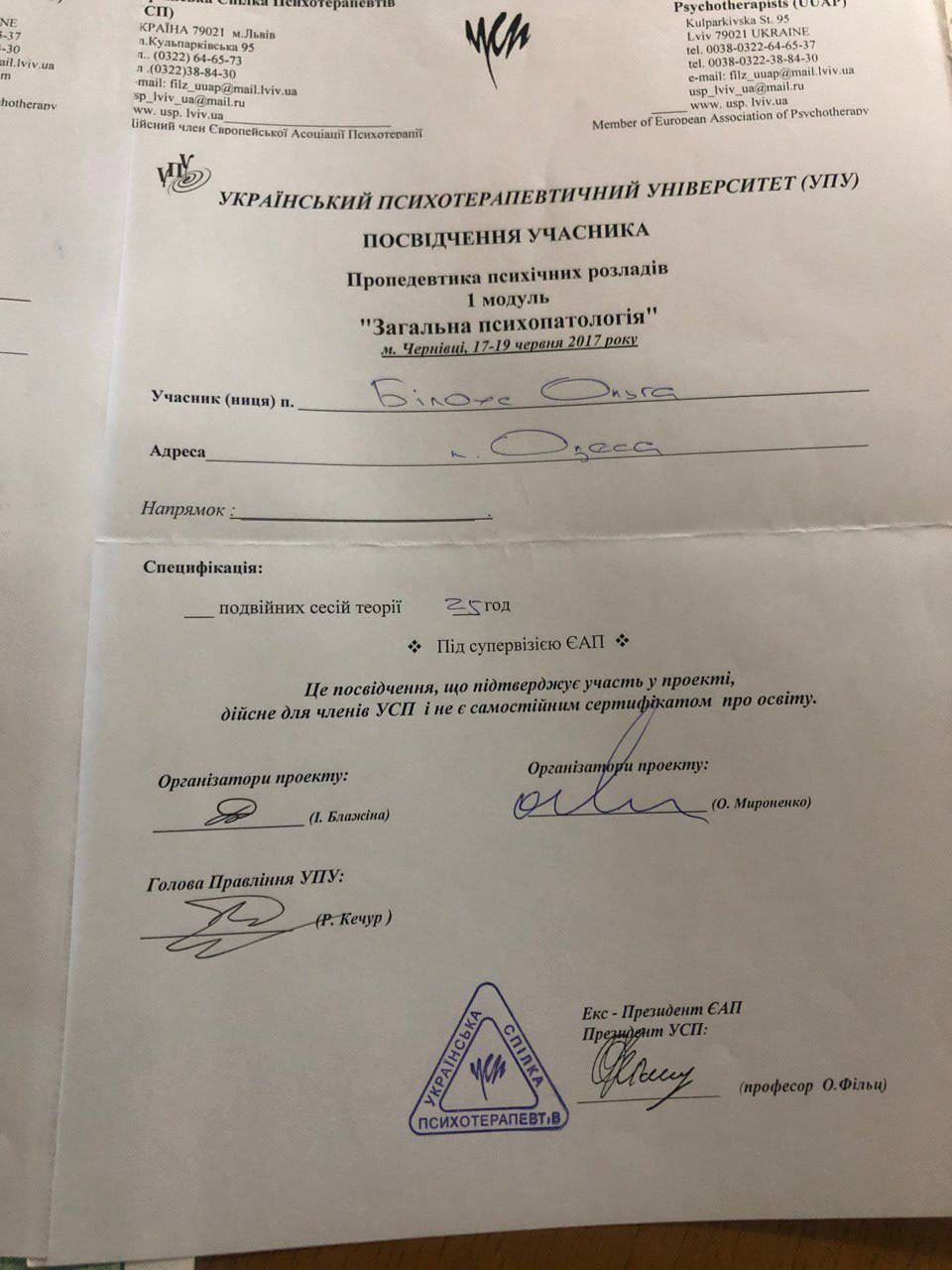 2017, 2018, 2024 — УСП, гештальт-інтенсиви (клієнтський та супервізійний досвід)