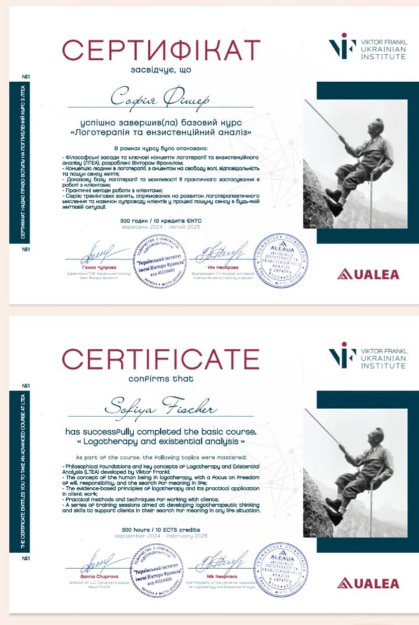 2024 — Базовий курс «Логотерапія та екзистенційний аналіз», Український інститут імені Віктора Франкла