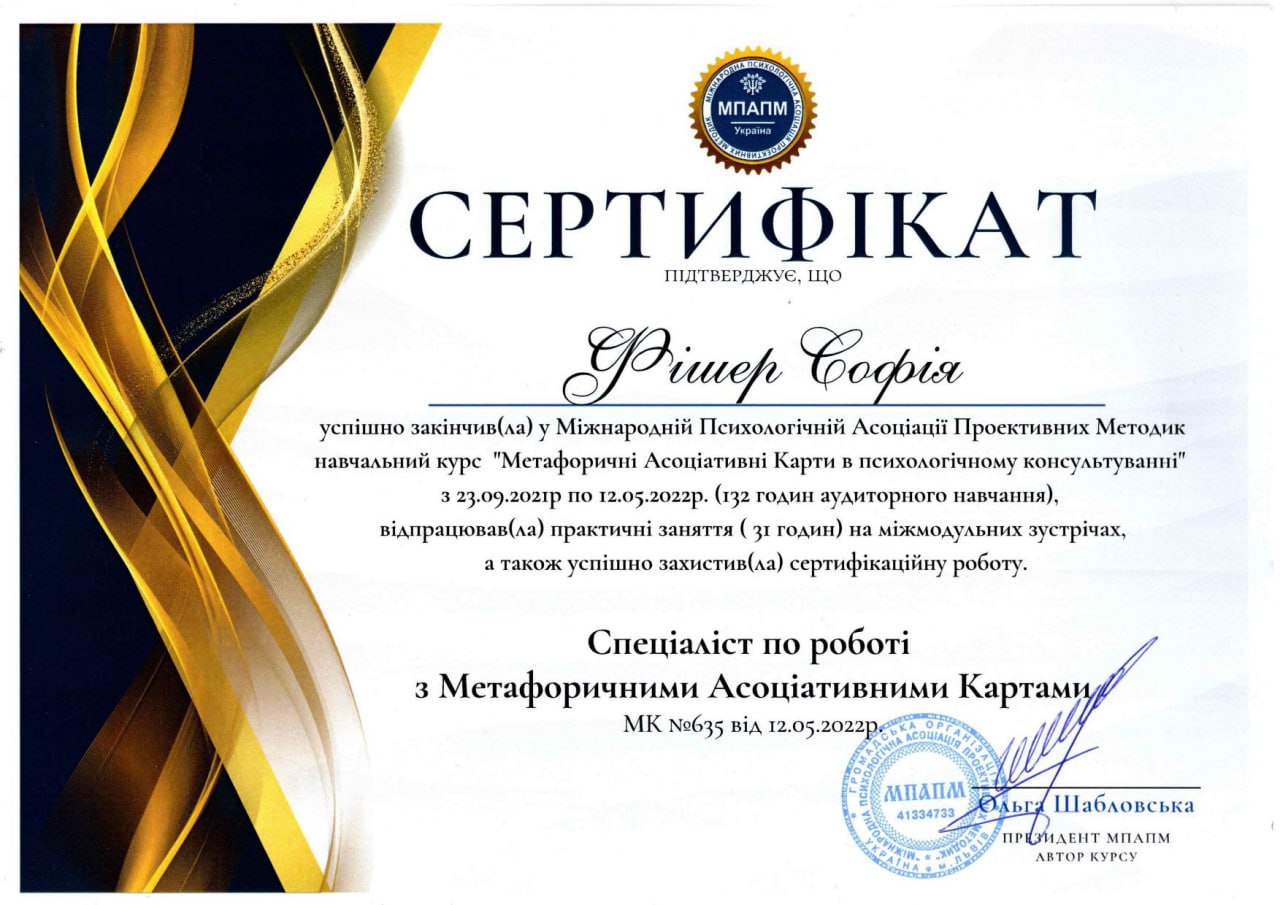 2022 — Курс «Метафоричні асоціативні карти в психологічному консультуванні» Міжнародна психологічна асоціація проективних методик