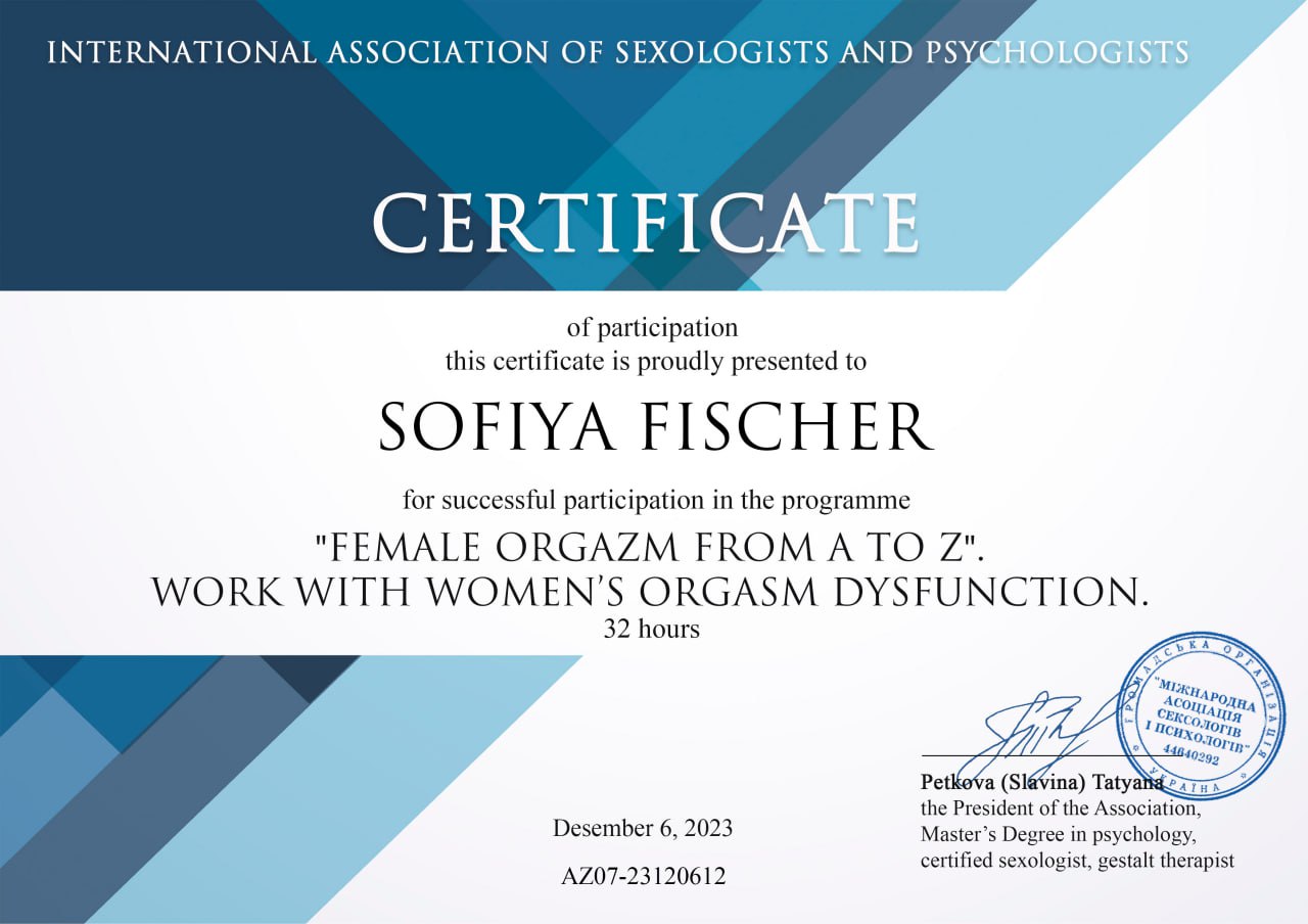 2023 — Програма «Female Orgasm from A to Z. Work with Women’s Orgasm Dysfunction», Міжнародна асоціація сексологів та психологів