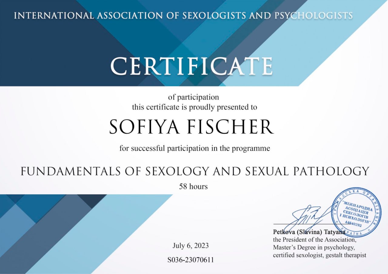 2023 — Програма «Fundamentals of Sexology and Sexual Pathology», Міжнародна асоціація сексологів та психологів