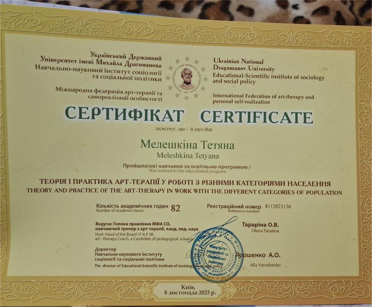 2023 — Теорія і практика арт-терапії у роботі з різними категоріями населення, Український державний університет імені Михайла Драгоманова