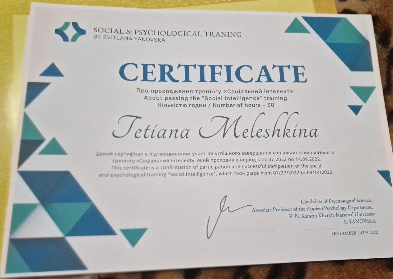2022 — Тренінг «Соціальний інтелект», Харківський національний університет імені В. Н. Каразіна