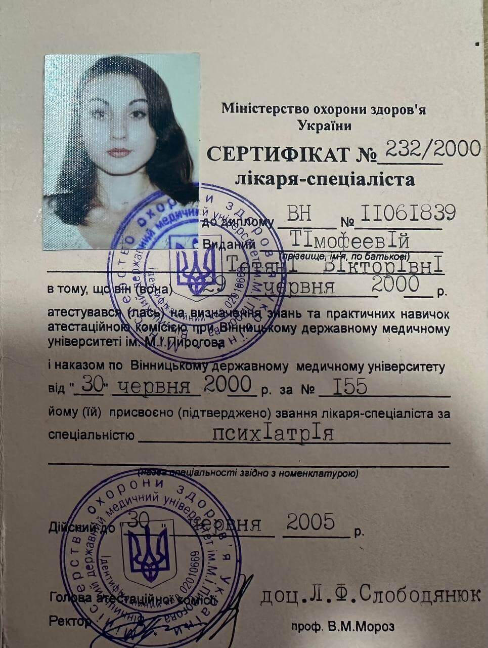 В 2021 – році підтвердила звання лікаря-психіатра за спеціальністю Психіатрія.