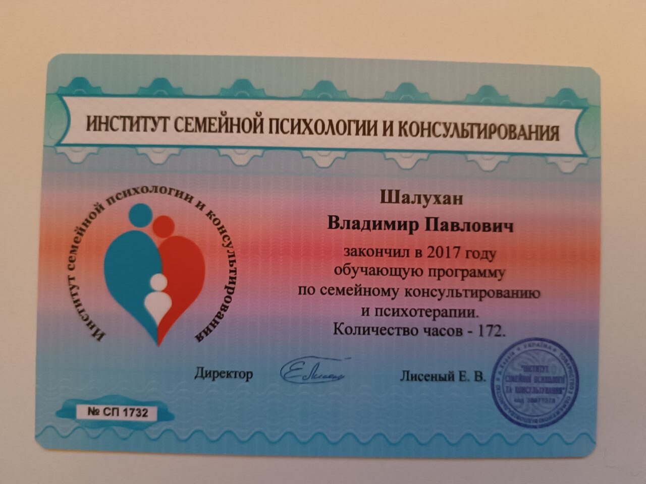 2017 – Програма по сімейному консультуванні і психотерапії. Інститут сімейної психології та консультування.