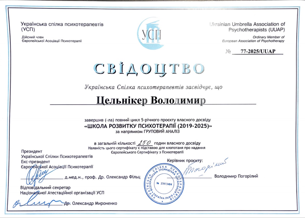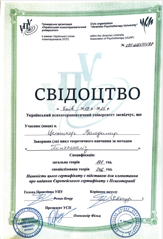 2019–2025 — Цикл теоретичного навчання за методом «Психоаналіз», Український психотерапевтичний університет