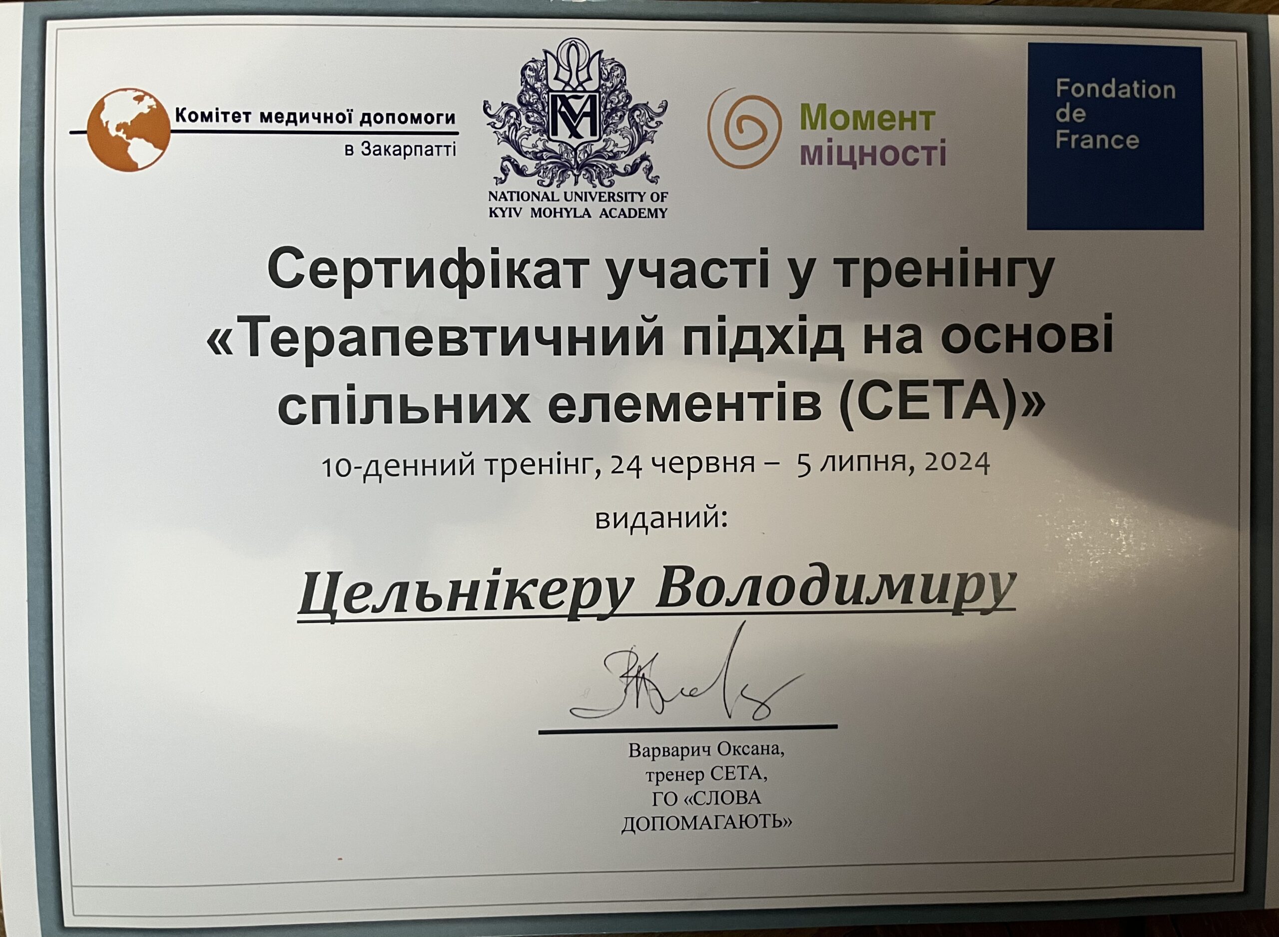 2024 — Тренінг «Терапевтичний підхід на основі спільних елементів (CETA)» Комітет медичної допомоги в Закарпатті, ГО «СЛОВА ДОПОМАГАЮТЬ»