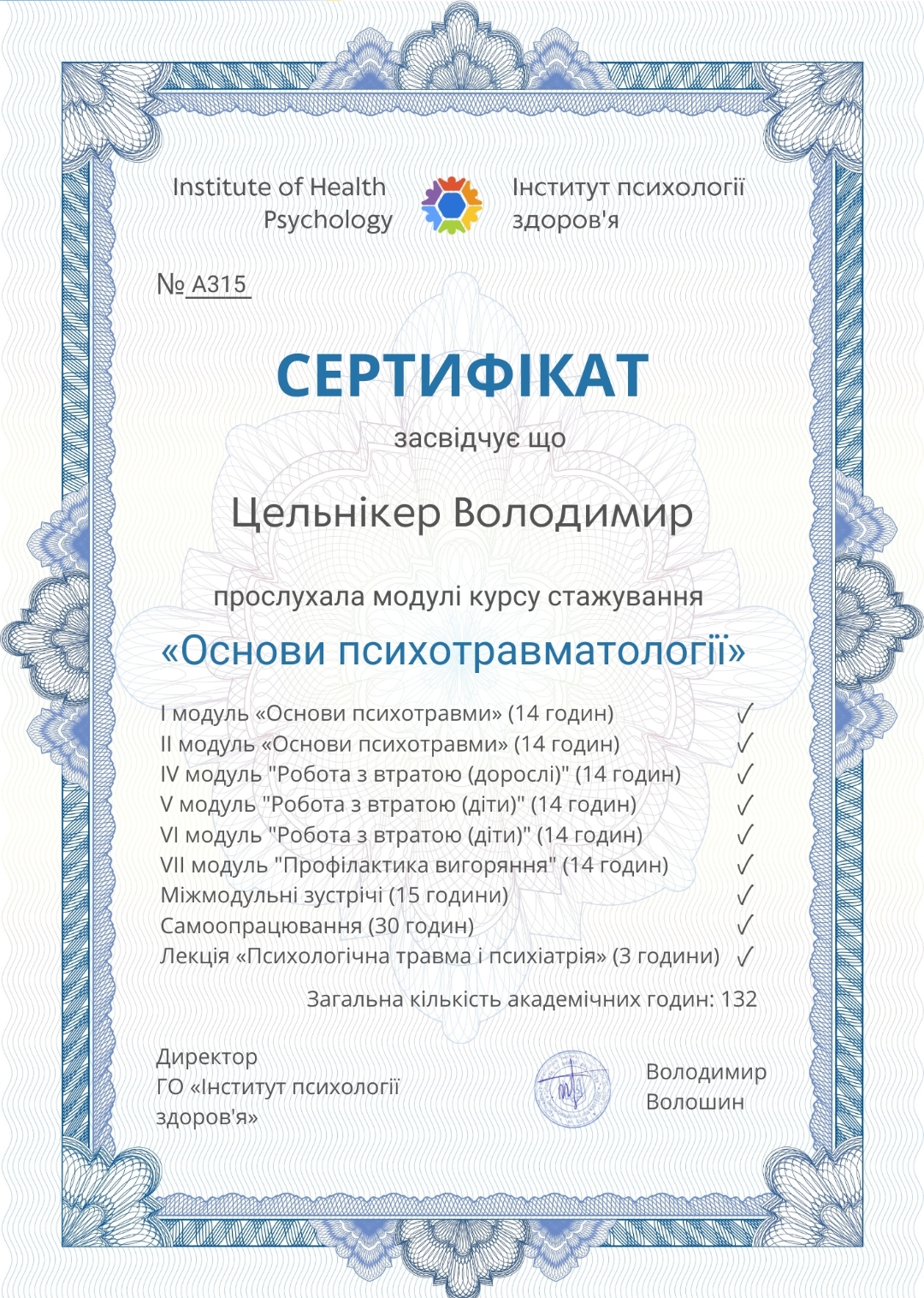 Курс стажування «Основи психотравматології» ГО «Інститут психології здоров’я»